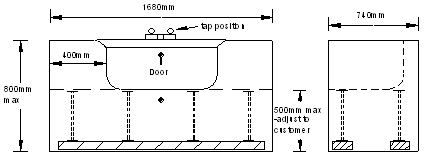 Het bad kan op verschillende hoogtes geïnstalleerd worden